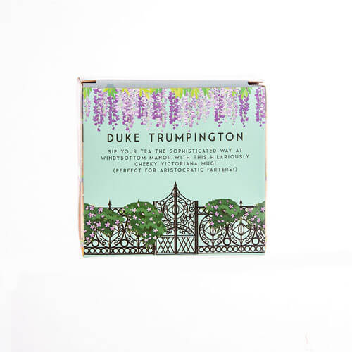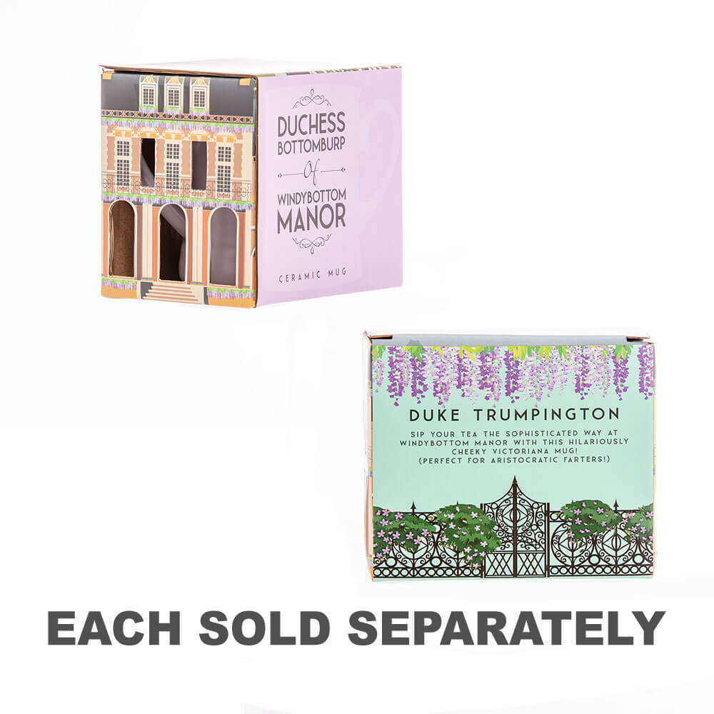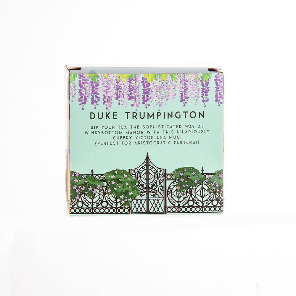 Todo mundo peido - até duques e duquesas! Esta hilariante novidade 'Duke Trumpington' Victoriana Caveta está completa com o texto divertido 'Duke Trumpington de Windybottom Manor', ótimo por conceder a alguém seu título oficial * fedorento *! Impresso em uma linda caneca azul e apresentada em uma caixa de presente decorativa gráfica de qualidade, esta caneca divertida é o presente perfeito para ele nos aniversários ou no Natal e o apresenta oficialmente na casa de Trumpington (com razão)!